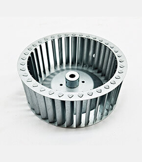 A Cast aluminum impeller is directly mounted on the motor shaft in a casing of sheet welded construction with flat iron flanges.